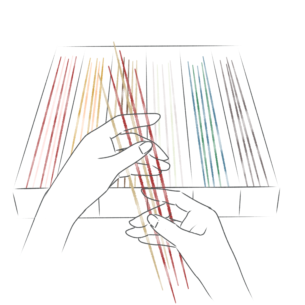 数十色の中から水引を選びます